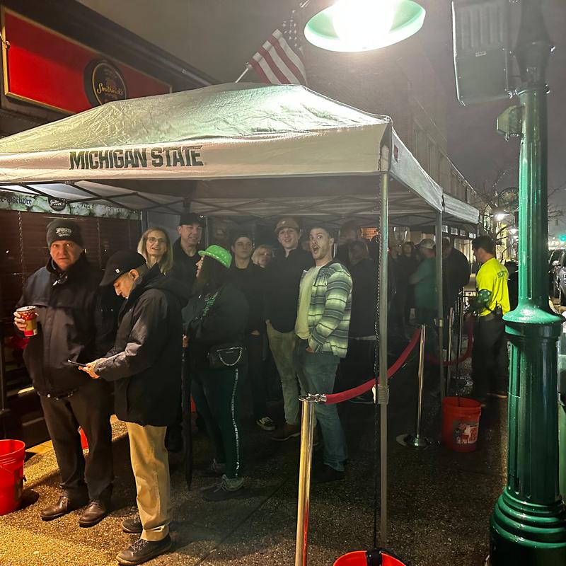 For this event we do not offer our full menu. In the morning 7am-10am Irish Breakfast Buffet is available for free with cover charge. We have stadium style food available at all of our bars and a large concession area in the Party Tent. We do not offer carryout service this day.