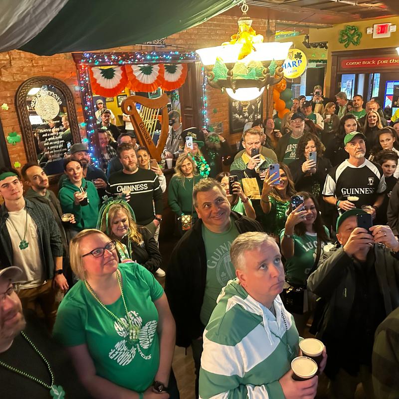 On this day we actually remove all the furniture inside the pub and it's standing room only. We do not offer lunch or dinner service. It's standing room only party atmosphere.